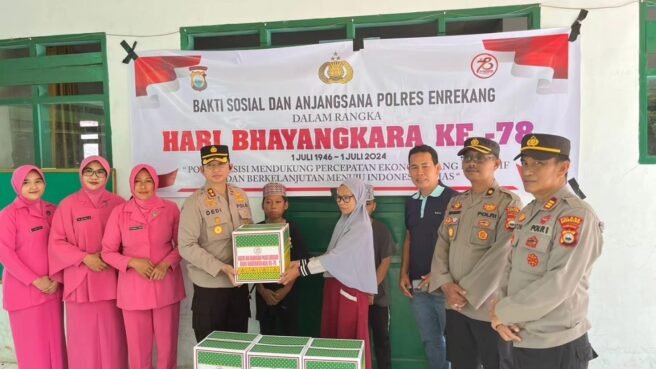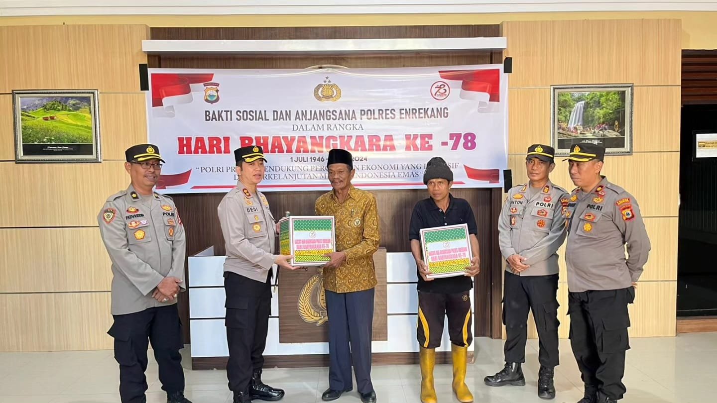 ENREKANG, HBK — Dalam rangka menyambut Hari Ulang Tahun (HUT) Bhayangkara ke-78 yang akan jatuh pada 1 Juli 2024, Polres Enrekang melaksanakan kegiatan bakti sosial anjangsana, Selasa (25/06/2024).