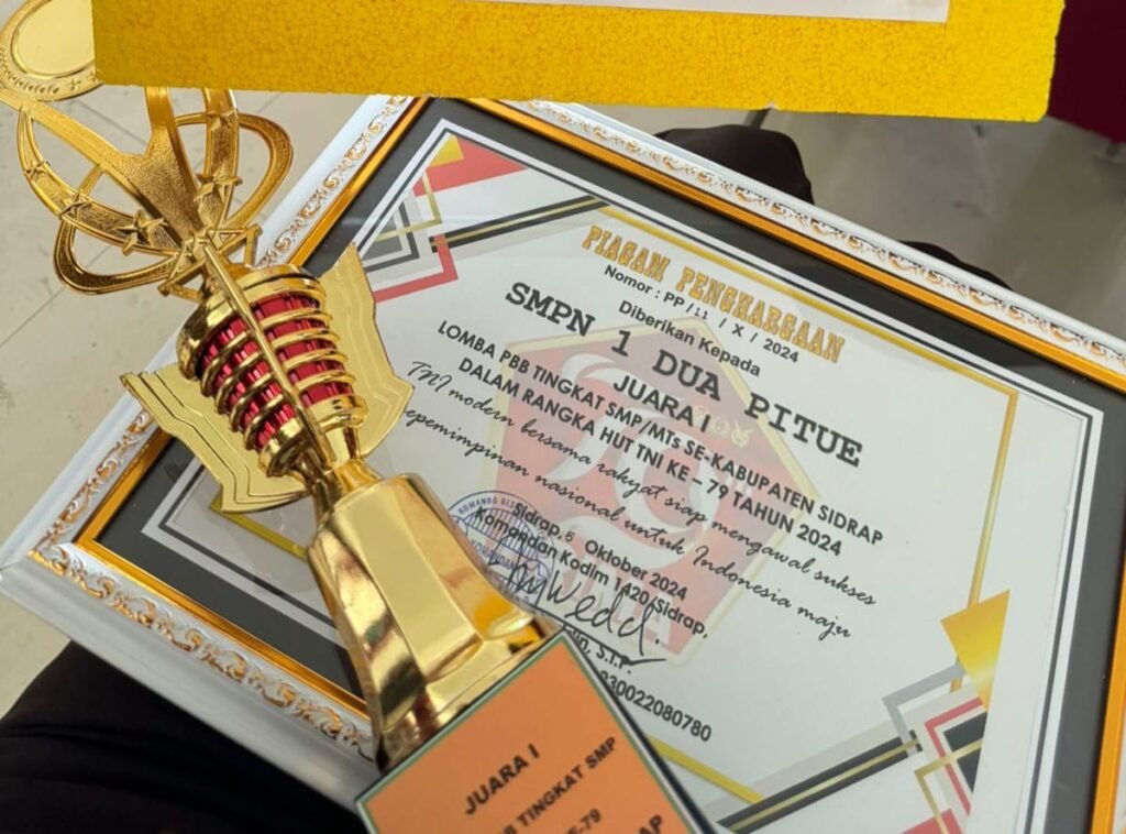 SIDRAP, HBK – Dalam rangka perayaan HUT TNI ke-79, SMPN 1 Dua Pitue sukses meraih juara 1 dalam Lomba Peraturan Baris Berbaris (LPBB) tingkat Kabupaten yang diselenggarakan oleh Kodim 1420 Sidrap.
