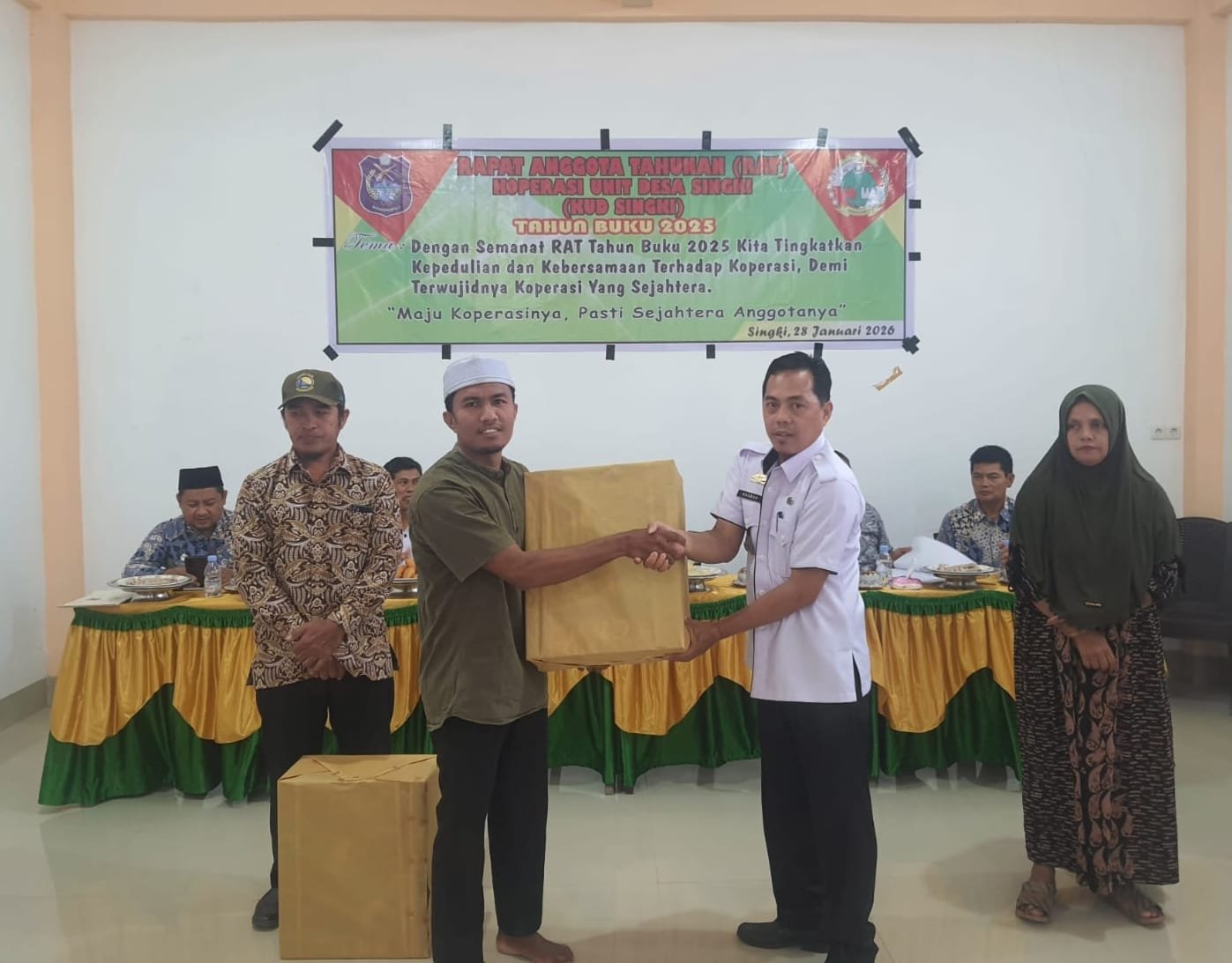 Dalam sambutannya, Hasbar menyampaikan apresiasi kepada pengurus dan seluruh anggota Koperasi Konsumen Unit Desa Singki atas konsistensinya melaksanakan RAT sebagai wujud kepatuhan terhadap prinsip koperasi yang demokratis, transparan, dan bertanggung jawab.