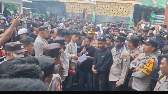 ENREKANG, HBK — Ratusan massa aksi unjuk rasa meminta Kepala Pengadilan Negeri Enrekang Fausiah, S.H., M.H Di copot dari jabatannya yang dianggap tidak objektif dalam menyampaikan putusan praperadilan perkara baznas enrekang di depan kantor pengadilan, Kabupaten Enrekang , Sulawesi Selatan,Senin (22/12/2025).
