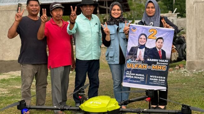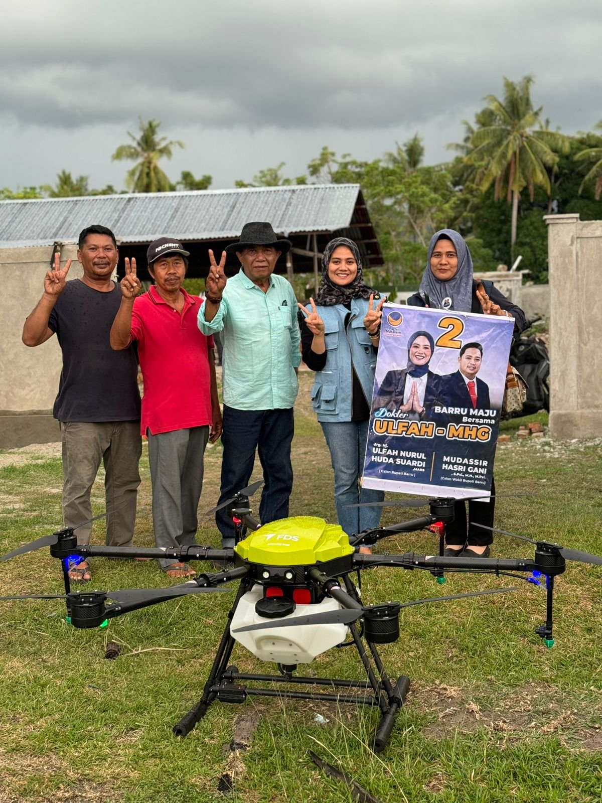 Dalam kesempatan ini, dokter Ulfah-MHG tak hanya orasi politik semata. Akan tetapi menunjukkan bukti nyata dengan menghadirkan peralatan canggih drone pertanian untuk para petani di Barru.