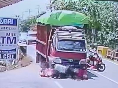 Diduga mengalami rem blong, truk tersebut tidak mampu mengendalikan laju kendaraan hingga akhirnya menabrak sepeda motor yang tengah menyeberang. Kecelakaan pun tak dapat dihindarkan.