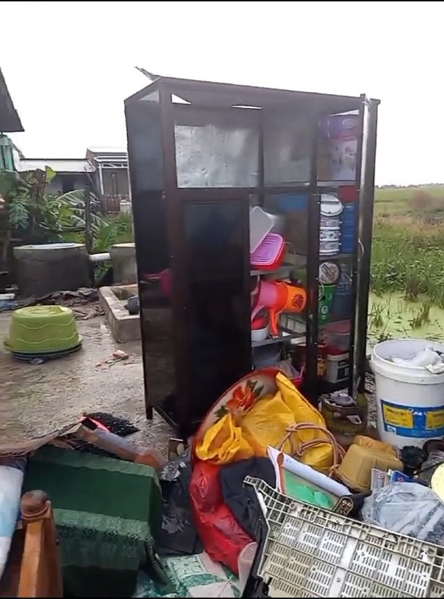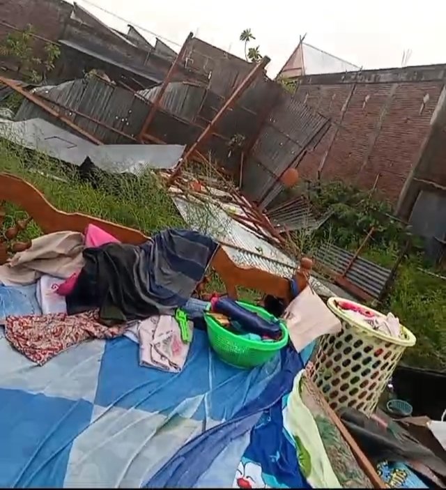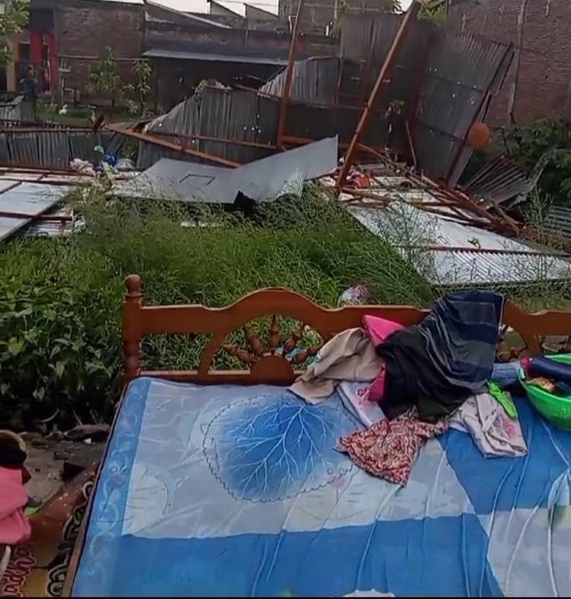 Ibu muda tersebut terlihat meratap sedih menyaksikan rumah joglo miliknya yang sebelumnya berdiri kokoh kini rata dengan lantai. Angin kencang menerbangkan atap dan dinding rumah yang terbuat dari papan, menyisakan puing-puing yang berserakan. Selain kerusakan pada bangunan, seluruh perabotan rumah tangga pun basah akibat hujan yang turut mengguyur saat kejadian.