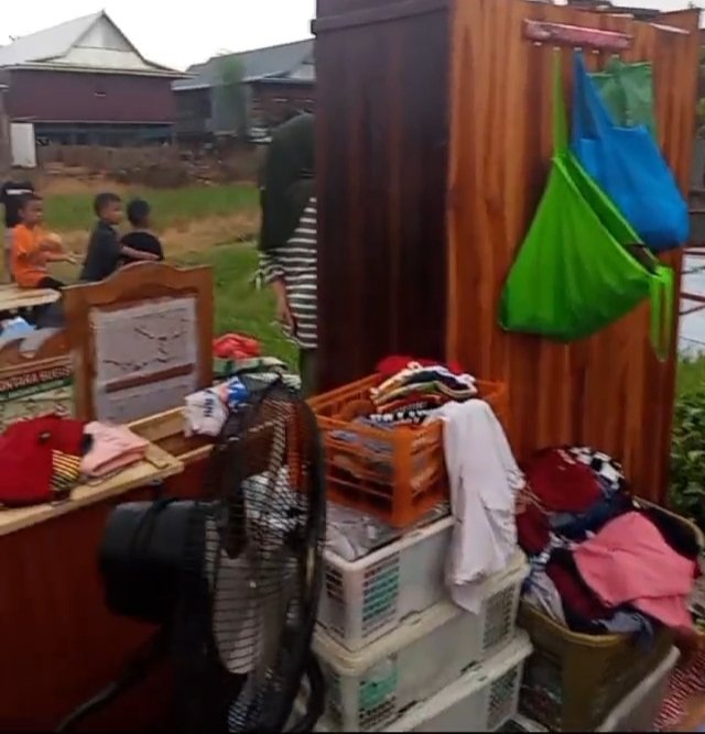 Saat ini, ibu rumah tangga bersama suami dan anak-anaknya sementara mengungsi di rumah tetangga yang dengan ikhlas memberikan tempat berlindung.