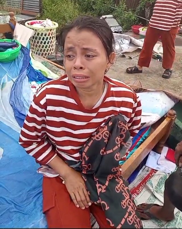 Ibu muda tersebut terlihat meratap sedih menyaksikan rumah joglo miliknya yang sebelumnya berdiri kokoh kini rata dengan lantai. Angin kencang menerbangkan atap dan dinding rumah yang terbuat dari papan, menyisakan puing-puing yang berserakan. Selain kerusakan pada bangunan, seluruh perabotan rumah tangga pun basah akibat hujan yang turut mengguyur saat kejadian.