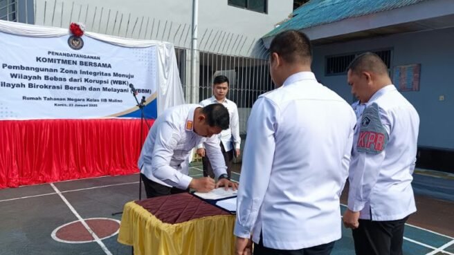 GOWA,HBK–Rumah Tahanan Negara (Rutan) Kelas IIB Malino menggelar Apel Penandatanganan Pakta Integritas dan Komitmen Bersama Menuju Wilayah Bebas Korupsi (WBK) serta Wilayah Birokrasi Bersih Melayani (WBBM) tahun 2025.