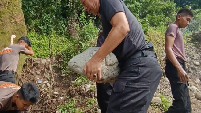 BARRU,HBK – Wujud kepedulian terhadap masyarakat personel Batalyon B Pelopor Satuan Brimob Polda Sulawesi Selatan melaksanakan kegiatan pembangunan jembatan darurat/jembatan gantung di Dusun Pakka, Desa Nepo, Kecamatan Mallusetasi, Kabupaten Barru. Kegiatan ini merupakan bentuk kepedulian Polri terhadap kebutuhan infrastruktur masyarakat, khususnya akses penghubung antarwilayah.