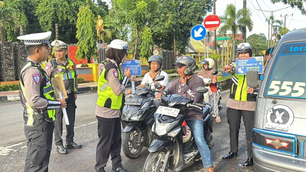 BARRU,HBK – Pada pelaksanaan Operasi Keselamatan Pallawa 2026, Selasa (3/2/2026) di hari kedua, pihak Satlantas Polres Barru melaksanakan kegiatan edukasi keselamatan berlalu lintas kepada para pengguna jalan.