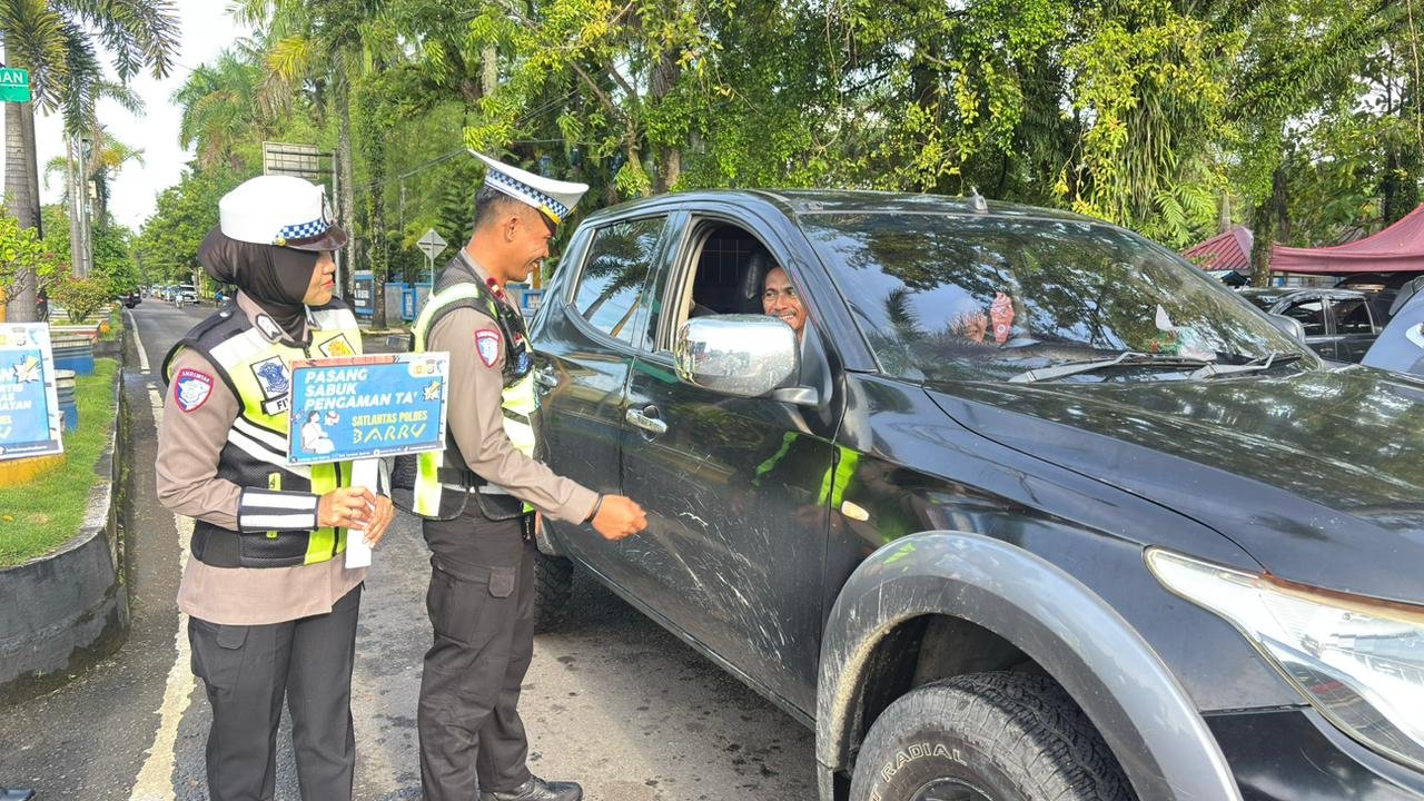 BARRU,HBK – Pada pelaksanaan Operasi Keselamatan Pallawa 2026, Selasa (3/2/2026) di hari kedua, pihak Satlantas Polres Barru melaksanakan kegiatan edukasi keselamatan berlalu lintas kepada para pengguna jalan.