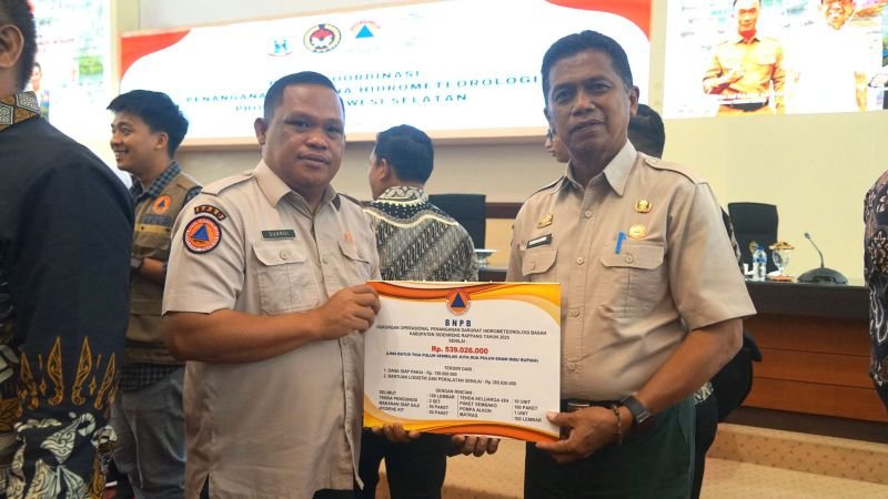 SIDRAP, HBK — Pemerintah Kabupaten Sidenreng Rappang (Sidrap) menerima bantuan senilai Rp539.026.000 dari Badan Nasional Penanggulangan Bencana (BNPB), Kamis (2/1/2025).