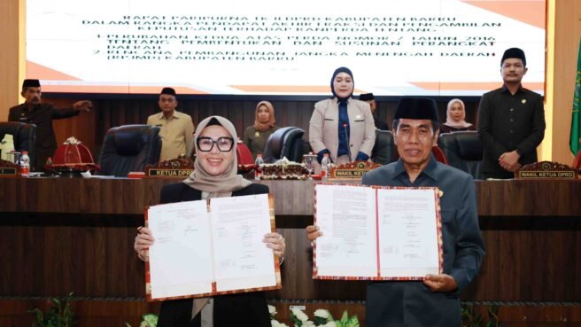 BARRU,HBK – Dua Rancangan Peraturan Daerah (Ranperda) Kabupaten Barru resmi disahkan menjadi Peraturan Daerah (Perda) dalam rapat Paripurna Tingkat II DPRD Kabupaten Barru yang digelar di Ruang Rapat Paripurna DPRD Kabupaten Barru, pada Kamis (03/07/2025).