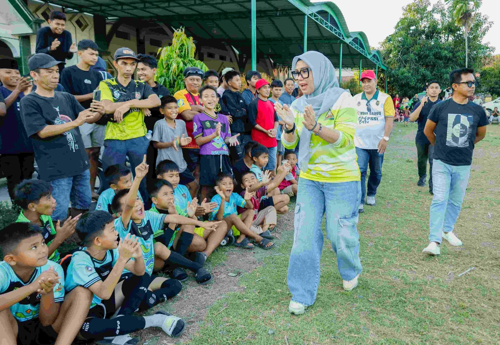 Bupati Andi Ina yang hadir langsung tampak antusias memberikan semangat kepada para pemain dan terpantau menyapa warga, supporter, para pemain yang memadati sisi lapangan.