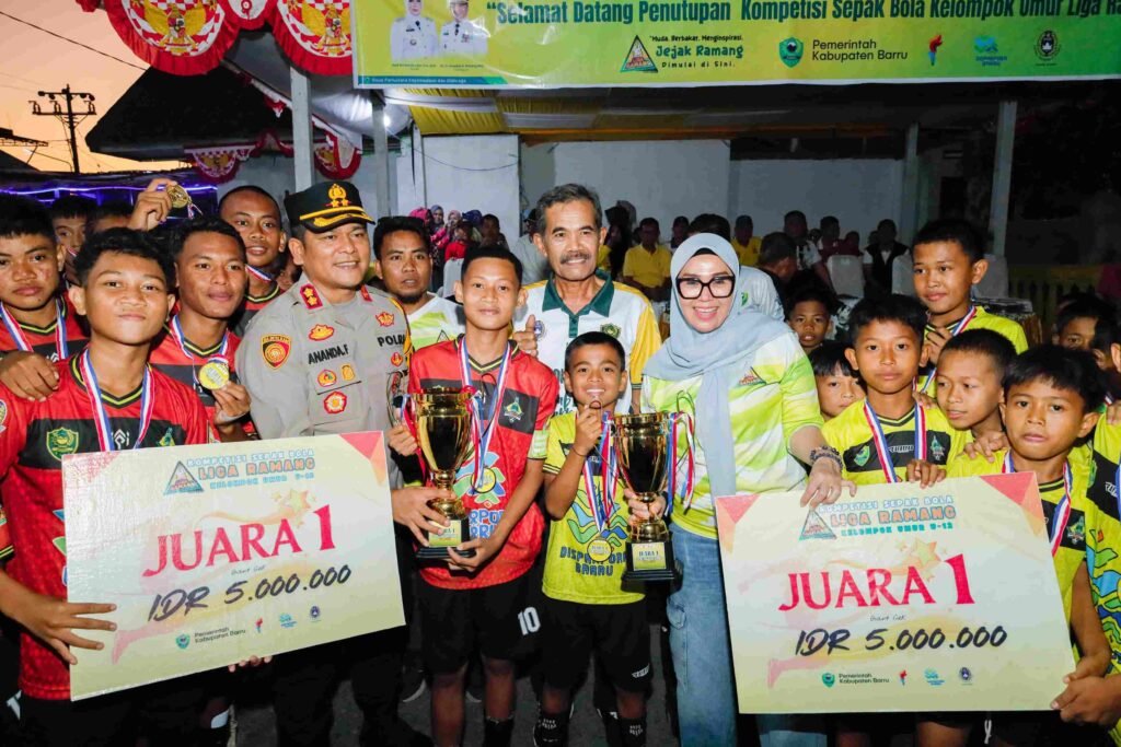 BARRU,HBK – Bupati Barru Andi Ina Kartika Sari, SH., M.Si., secara resmi menutup Kompetisi Sepak Bola Liga Ramang Kelompok Umur U-12 dan U-15 Tahun 2025, pada Ahad sore (20/07/2025), di Lapangan Sepak Bola Palanro, Kecamatan Mallusetasi Kabupaten Barru.