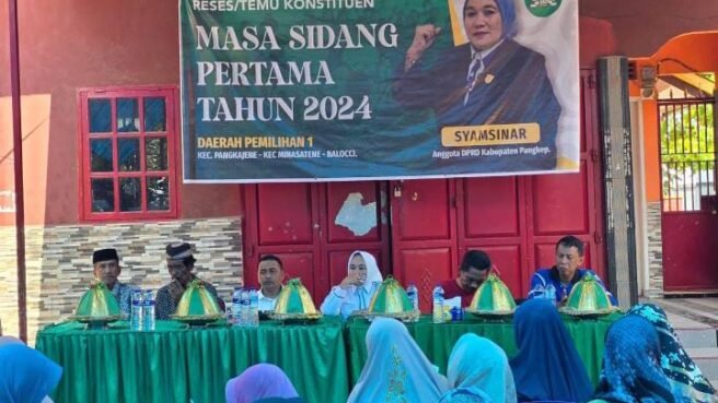 PANGKEP, HBK – Anggota Dewan Perwakilan Rakyat Daerah (DPRD) Kabupaten Pangkajene dan Kepulauan (Pangkep) dari Partai Persatuan Pembangunan (PPP), Syamsinar, melaksanakan reses perdananya di Kelurahan Tumampua, Kecamatan Pangkajene, pada Jumat, 15 November 2024. Acara ini dihadiri oleh lebih dari 100 warga, termasuk lurah dan tokoh masyarakat setempat.