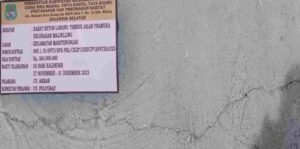 Proyek rabat beton senilai Rp 268 juta di Kelurahan Majeling, Kecamatan Maritengae—yang dikerjakan CV Akbar dengan pengawasan CV Polygraf—telah retak di banyak titik meski baru rampung Desember 2025.