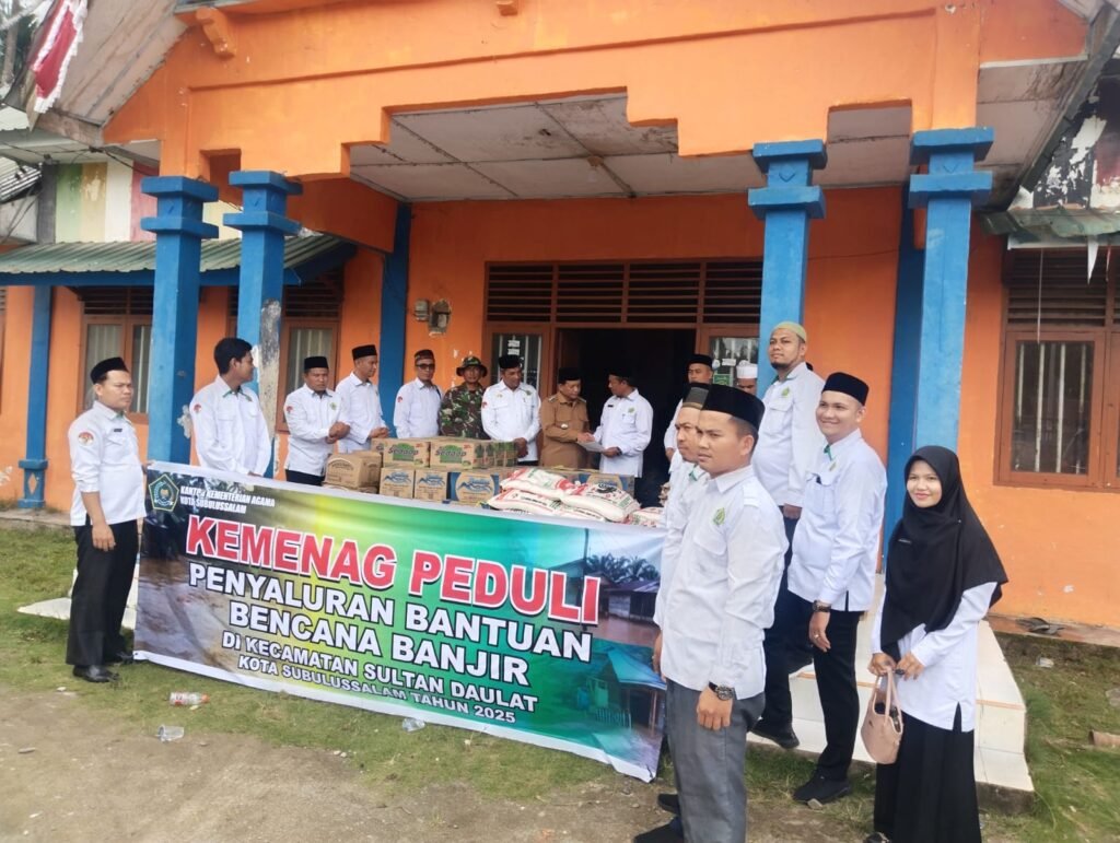 Sebagai bentuk kehadiran negara di tengah kesulitan masyarakat, rombongan Kemenag turun langsung ke wilayah terdampak banjir di Kecamatan Sultan Daulat untuk menyalurkan bantuan sembako, Selasa (2/12/2025).