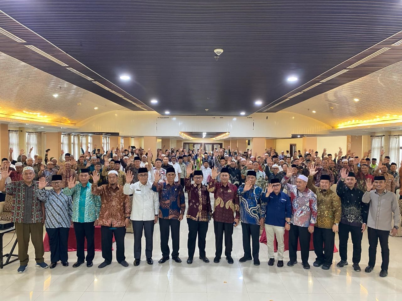 Turut hadir Kepala Kantor Wilayah Kementerian Agama Provinsi Sumatera Utara H. Ahmad Qosbi, S.Ag., M.M., Kepala Kemenag Kota Medan, Ketua Forum KBIH, serta para Ketua Regu dan Ketua Rombongan jemaah haji se-Kota Medan.