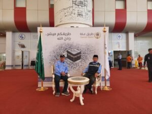 “Ini merupakan kedatangan perdana gelombang kedua jamaah dari tanah air langsung Jedda,Alhamdulillah sesuai ketentuan yang telah kita sampaikan sebelumnya,jamaah semuanya menggunakan ihram dari tanah air biar lebih efisiensi waktu saat akan melaksanakan umrah wajib,jelas DR Bunyamin.