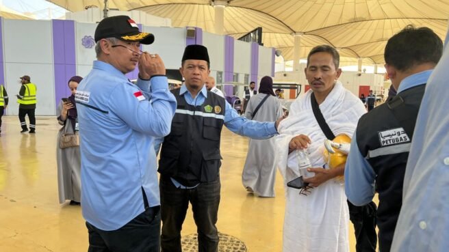 Semua jemaah telah mengenakan pakaian ihram dari Tanah Air. Mereka menunjukkan ekspresi syukur, mulai dari senyum bahagia, tangis haru, hingga sujud syukur. Di antaranya adalah Saltumah (70), jemaah asal Serang, Banten, yang tak kuasa menahan tangis saat tiba di Tanah Haram setelah puluhan tahun bermimpi menunaikan ibadah haji.