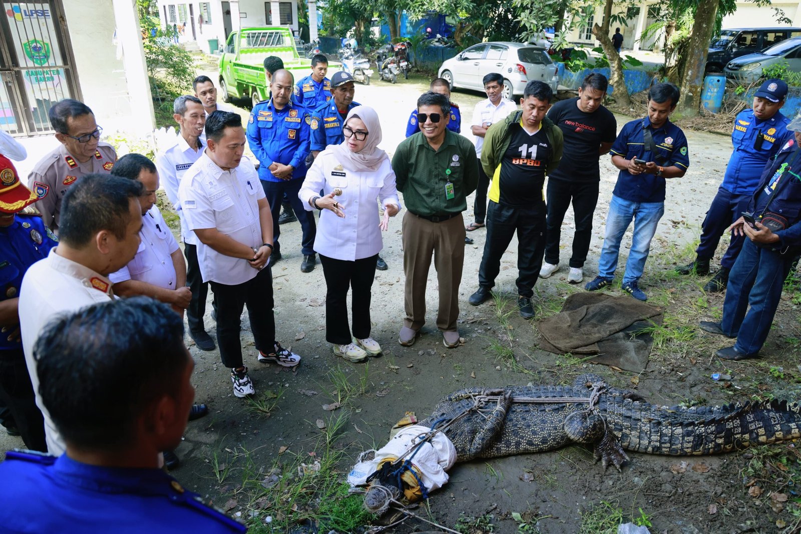 Bupati Barru A.Ina Kartika Sari mengapresiasi Tim Damkar Barru yang dengan susah payah berhasil menangkap buaya yang sempat meresahkan masyarakat tiga bulan terakhir ini.