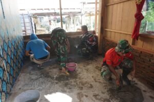 Dengan penuh semangat, personel Satuan Tugas (Satgas) TMMD terlihat bekerja keras mengerjakan plester dinding rumah milik Ibu Rosdiana, salah satu penerima manfaat program ini. Setiap tahapan pekerjaan dilakukan dengan cermat agar hasilnya maksimal dan bertahan lama.