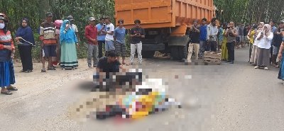 Pada saat bersamaan, truk Mitsubishi Fuso yang dikemudikan Alam datang dari arah berlawanan. Tabrakan pun tak terhindarkan. Kedua korban terlindas dan tewas seketika di lokasi.