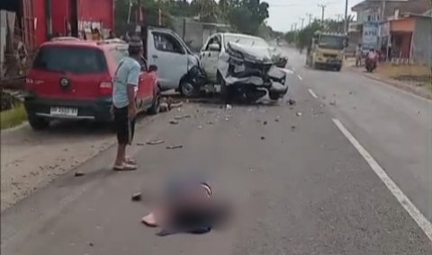 Dari arah berlawanan, sebuah mobil putih melaju kencang dan menabrak sepeda motor mereka hingga terpental. Mobil tersebut kemudian juga menabrak sebuah mobil pikap yang sedang parkir.