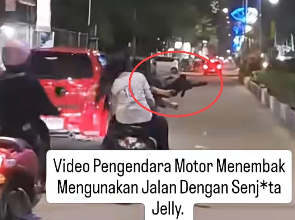 Bahkan, beredar sebuah video yang memperlihatkan perempuan berkendara tanpa menggunakan helm sambil membawa mainan tembakan jeli dan mengayun-ayunkannya di jalan.