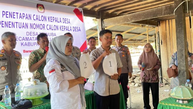 BARRU,HBK — Penetapan dan pengundian nomor urut calon Kepala Desa Manuba berlangsung khidmat dan disaksikan antusias warga.