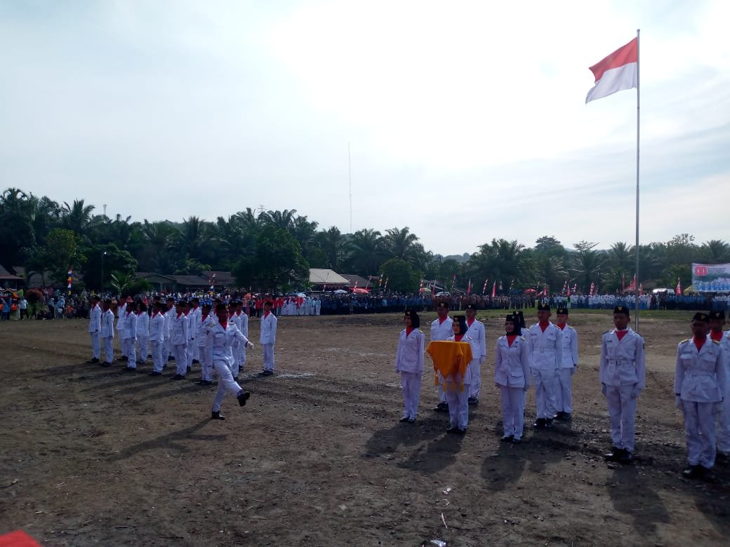 Pengibaran sang merah putih berlangsung khidmat dan penuh kebanggaan. Dentuman hentakan langkah pasukan dan sorak semangat peserta upacara menambah kemeriahan peringatan hari bersejarah tersebut.