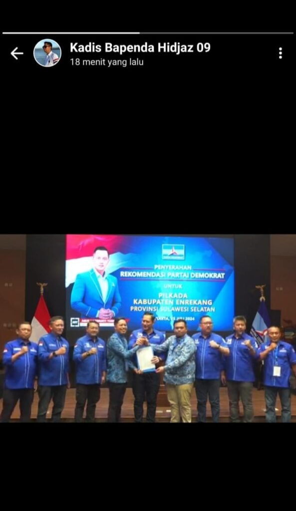 Dirinya kedapatan warganet memposting foto penyerahan rekomendasi partai Demokrat kepada pasangan calon bupati dan wakil bupati Enrekang, Yusuf Ritangga dan Andi Liwang.