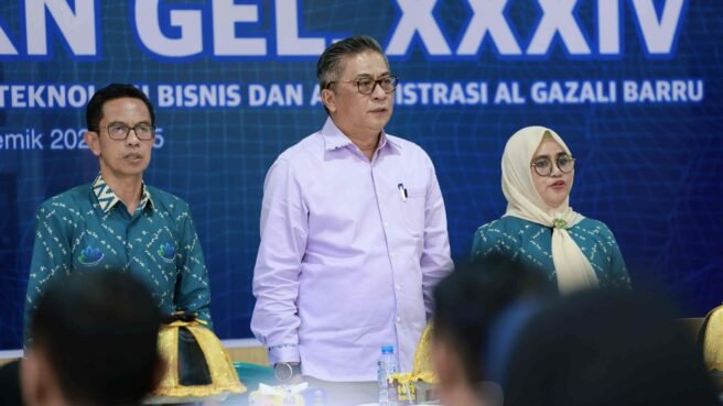 BARRU,HBK – Wakil Bupati Barru, Dr. Ir. Abustan A. Bintang, M.Si., memberikan pembekalan sekaligus melepas secara resmi mahasiswa Kuliah Kerja Nyata (KKN) Gelombang 34 Institut Teknologi dan Bisnis Al-Gazali (ITBA) Barru yang berlangsung di Aula Kampus ITBA, Sabtu (19/7/2025).