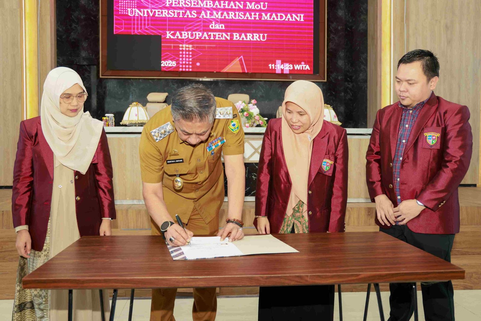 BARRU,HBK – Pemerintah Kabupaten Barru menandatangani Nota Kesepahaman (MoU) dengan Universitas Almarisah Madani terkait pelaksanaan Kuliah Kerja Nyata (KKN) di wilayah Kabupaten Barru. Penandatanganan tersebut berlangsung di Lantai VI MPP Kantor Bupati Barru, pada Senin (14/07/2025).