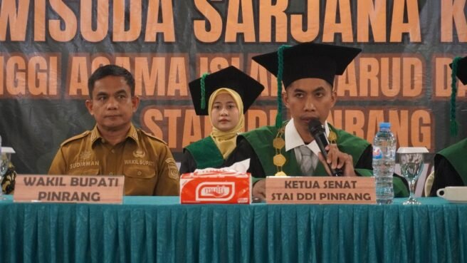 Hal tersebut disampaikan Wakil Bupati Pinrang, Sudirman Bungi, S.IP., M.Si, saat memberikan sambutan pada kegiatan Wisuda Sarjana STAI DDI Pinrang Angkatan XX yang digelar di Aula Hotel M, Senin (15/12/2025).