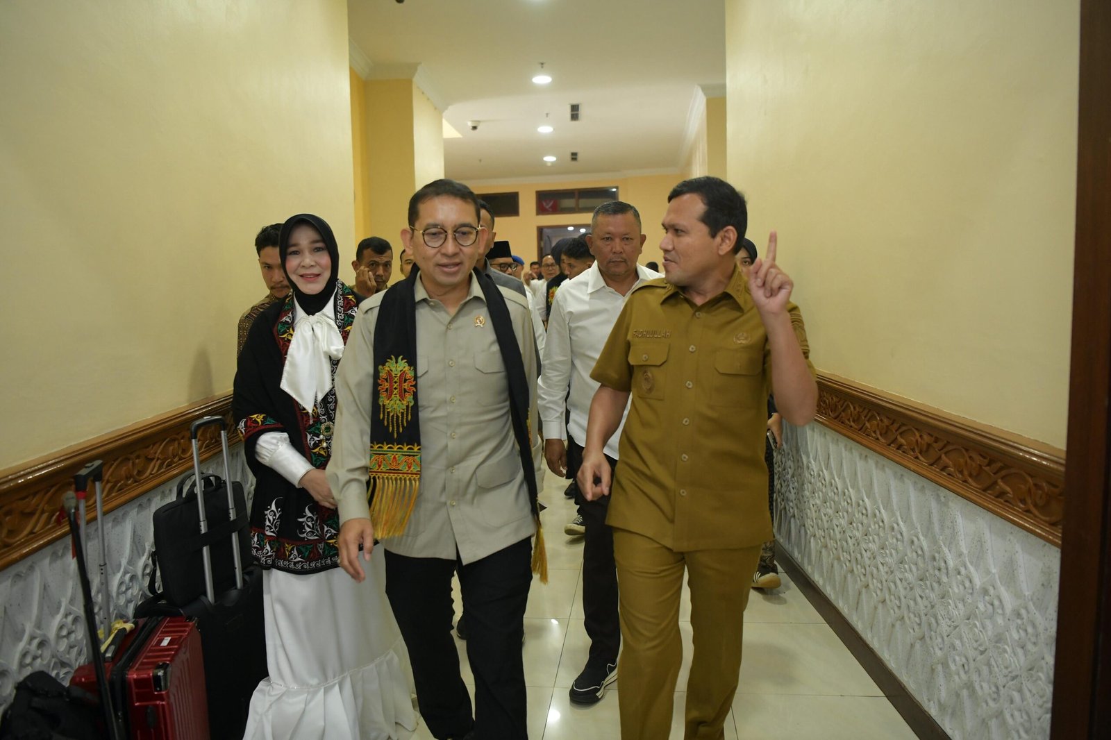 ACEH,HBK — Wakil Gubernur Aceh, H. Fadhlullah, SE., didampingi Wali Kota Banda Aceh, Hj. Illiza Saaduddin Djamal, menyambut kedatangan Menteri Kebudayaan Republik Indonesia, Fadli Zon, di Bandara Sultan Iskandar Muda (SIM), Senin, 24 Desember 2025.