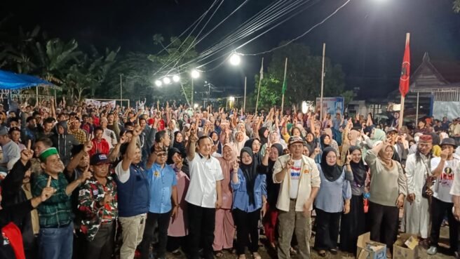 PINRANG, HBK — Pasangan Calon Bupati dan wakil Bupati Pinrang Ahmad Jaya Baramuli-Abdillah Natsir (JaDi) menggelar kampanye tertutup di Benteng, Kecamatan Patampanua, Sabtu 28 September 2024.