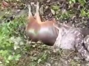 Dalam video yang beredar luas di media sosial, terlihat jelas tubuh sapi dewasa — mulai dari kepala hingga separuh badan — telah masuk ke dalam mulut ular tersebut. Momen dramatis ini direkam oleh warga yang kebetulan melintas di jalan tani, dan sontak menarik perhatian banyak orang di sekitar lokasi.