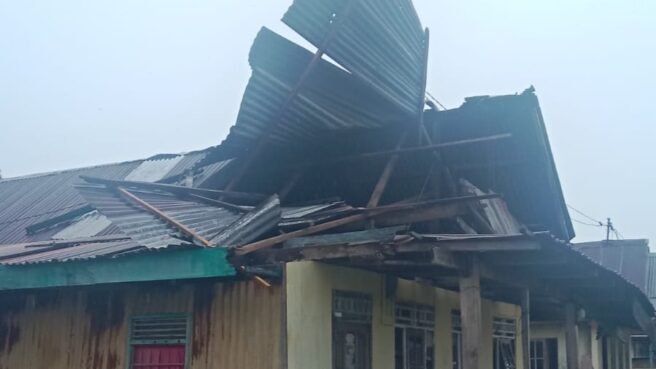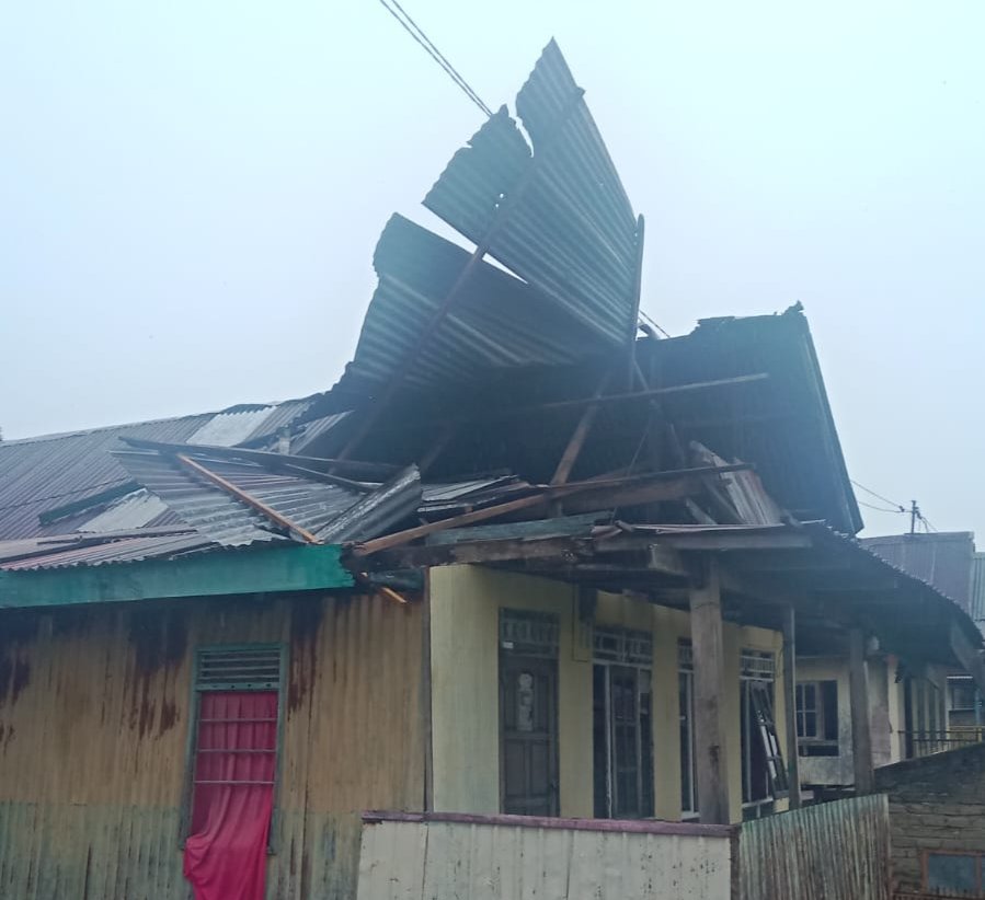 Rumah tersebut adalah milik Riswan yang mengalami kerusakan pada bagian atap akibat angin kencang.