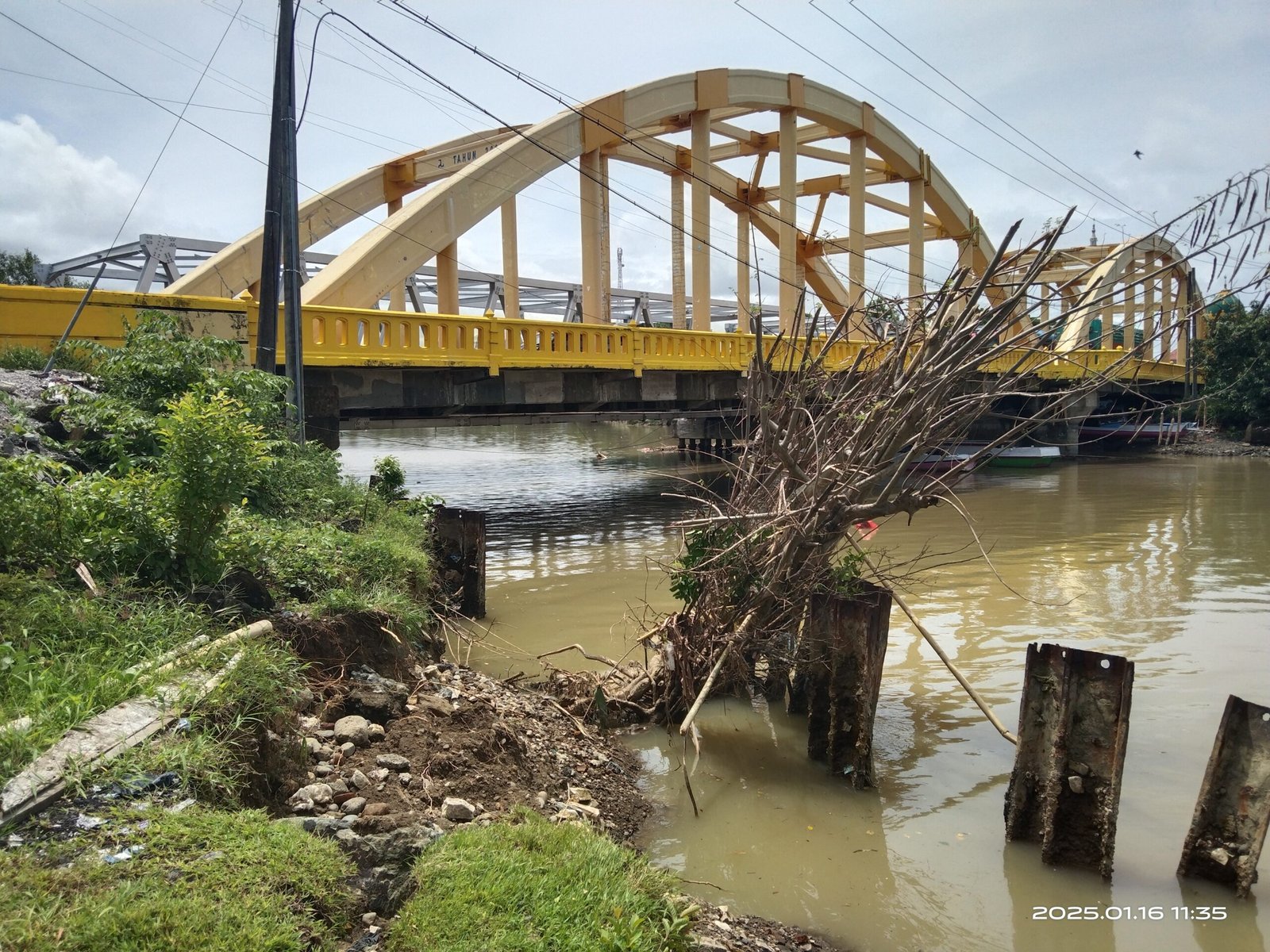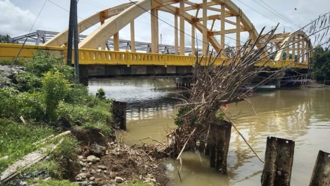 BARRU,HBK – Akibat curah hujan intensitas tinggi selama 2 hari sejak Selasa (14/1) lalu membuat bantaran sungai Takkalasi mengalami abrasi yang membahayakan Jembatan dan pemukiman warga sekitar.