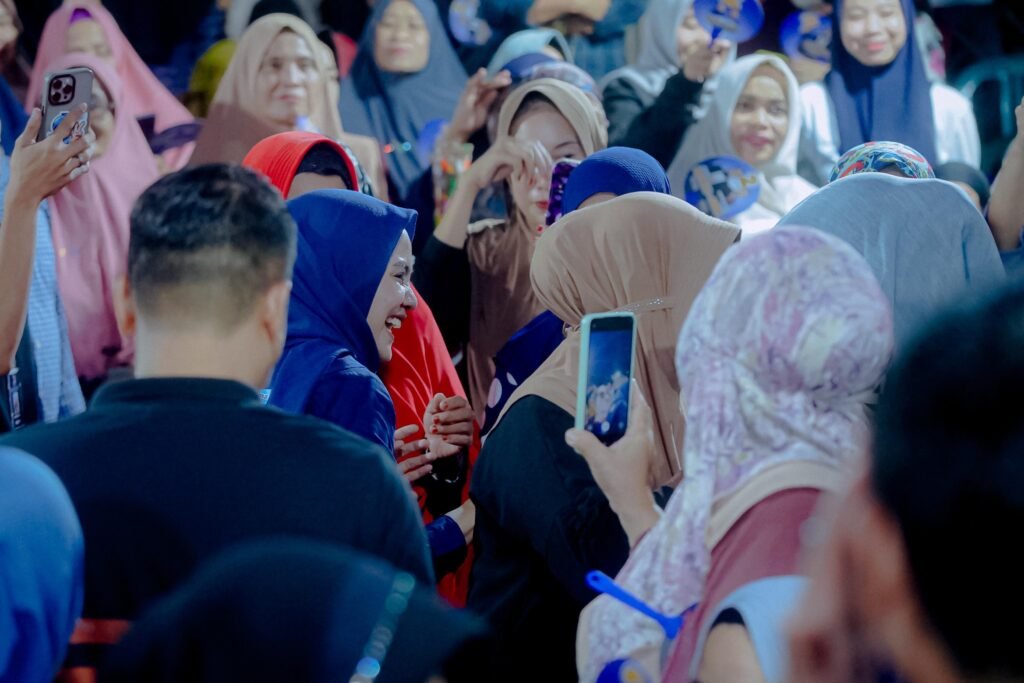 Yel-yel dukungan nomor 2 terus digaungkan, mengiringi dokter Ulfah hingga menuju panggung orasi kampanye.