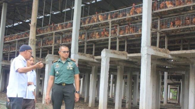 SIDRAP — Bersama H. Siara Barang, S.H., M.Si., Asisten II Perekonomian & Pembangunan Pemerintah Kabupaten Sidrap, Dandim 1420/Sidrap Letkol Inf Andika Ari Prihantoro, SE., M.I.Pol., mengecek langsung kandang ayam petelur di Putri Kembar Layer Farm Desa Mario Kecamatan Kulo Kabupaten Sidenreng Rappang, Kamis (14/03/24).